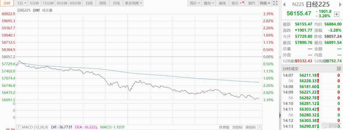 日(ri)经225指数跌幅扩大,最新下跌超3%,跌超1900点(dian)。