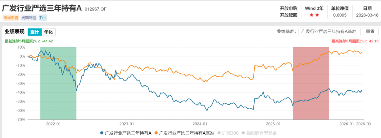 据Wind数据,停止3月18日,广(guang)发行业严选三年持有混(hun)淆自成立以来吃亏39.35%,跑输功绩比较基准43.25个百(bai)分点;范围从2021岁终的155.34亿元(yuan)缩水至2025岁终的58.2亿元(yuan)。停止2025年上半年,该产(chan)品(pin)总(zong)吃亏高达78.57亿元(yuan)。2025年9月,该产(chan)品(pin)已增聘基金经(jing)理周智硕与刘格菘共管(guan)。